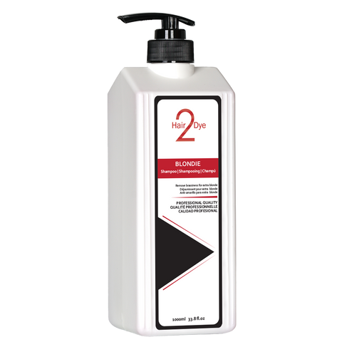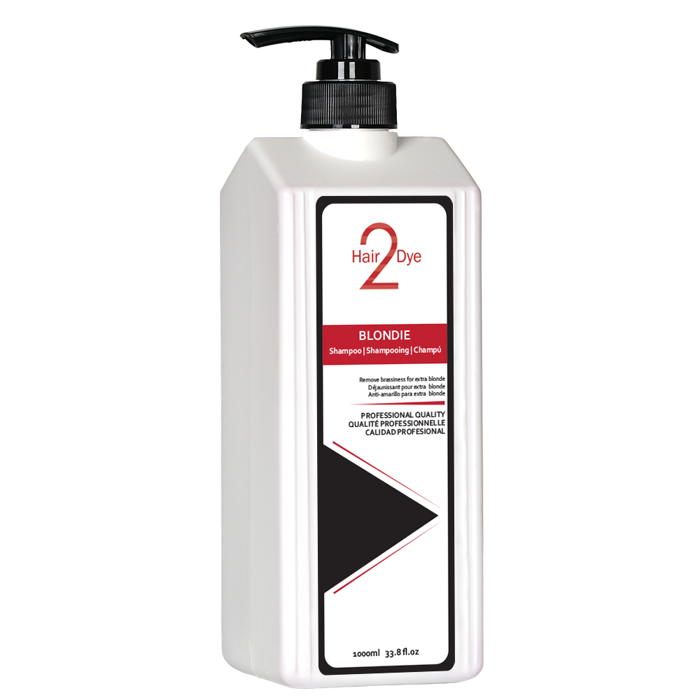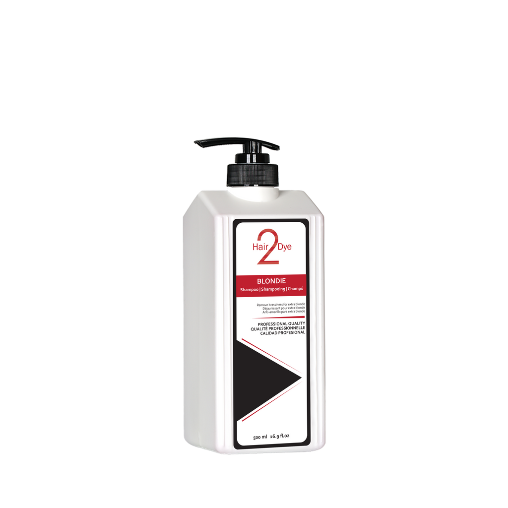 Remove Brassiness for extra blonde hair with the Hair 2 Dye Blondie Shampoo, The purple formula can remove the brassy tone of the blonde hair which often appears several washes after the colour treatment. It contains abundant conditioning ingredients which strengthens fragile hair, adds moisture, brightens and boosts shine while leaving the hair vivid and vibrant. It is available in 500 ml and 1000 ml pump containers.
