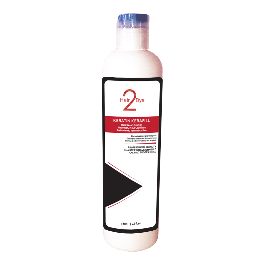 The Hair 2 Dye Keratin Kerafill Hair Re-constructor is a revolutionary hair re-constructor and volume reducing treatment that eliminates kinky, frizzy hair textures, leaving hair straight, healthy and shiny. Keratin, together with a highly concentrated protein compound, has a unique synergy that acts fast and vigorously to regenerate, rebuilding the hair shaft making it smooth and naturally straight. It works on all types of hair.